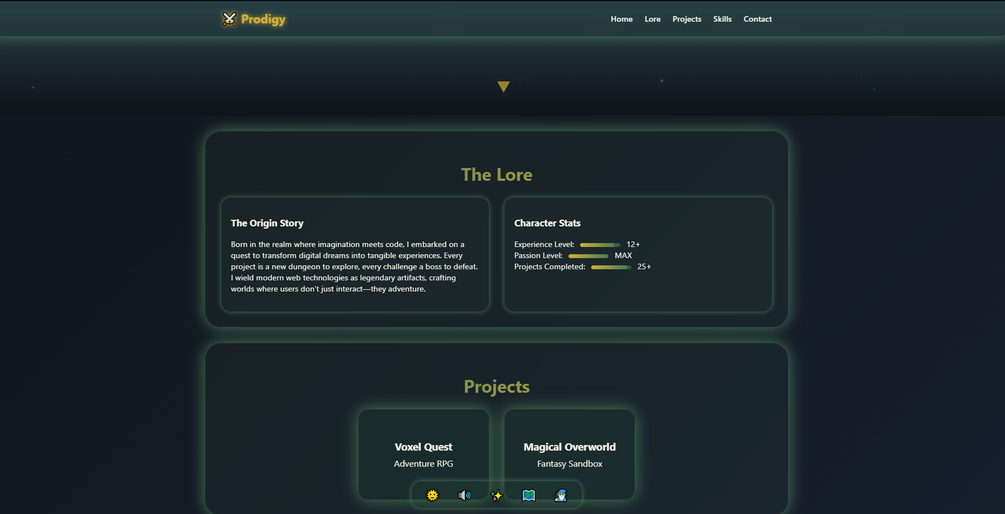 A fantasy game-inspired portfolio that transforms projects into experiences using modern code, motion, and interactive design.