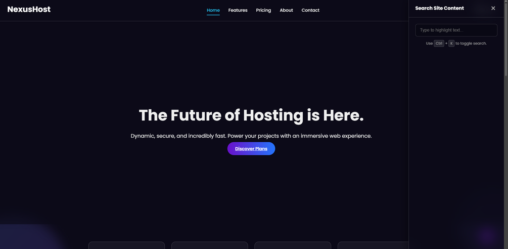 - Functional Ctrl + K Search: A sleek, slide-in search panel with live, on-page text highlighting.
